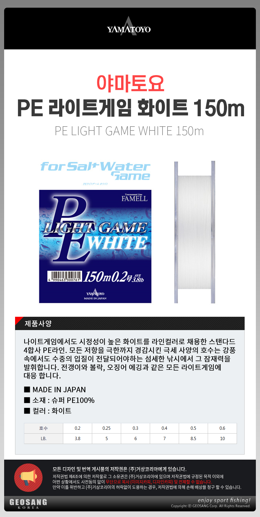 ǰ¸í ¹× ¸ðµ¨¸í ¾ß¸¶Åä¿ä PE ¶óÀÌÆ®°ÔÀÓ È­ÀÌÆ® 150M