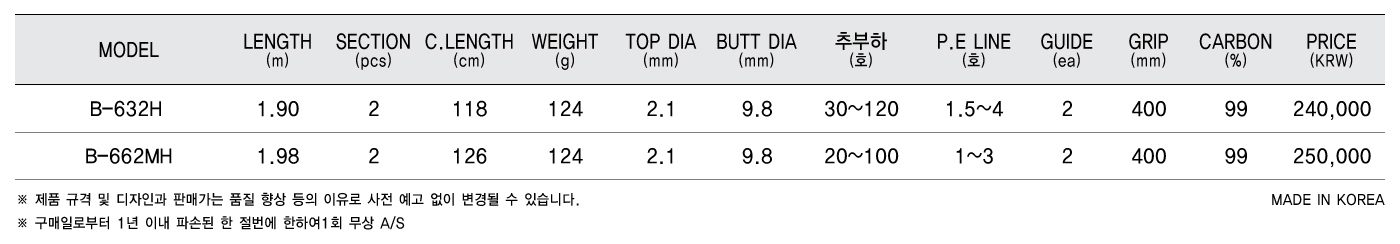 B-632H 1.90 2 118 124 2.1 9.8 30~120 2 400 99 240,000